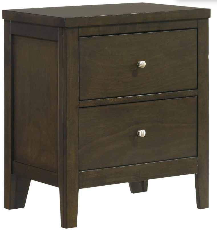 This two-drawer nightstand provides ample storage with a sleek, contemporary design that complements your bedroom’s aesthetic. The deep drawers offer plenty of space for keeping bedside essentials organized, while the dark cocoa finish adds warmth to the piece. Brushed nickel hardware enhances the modern look.Read More