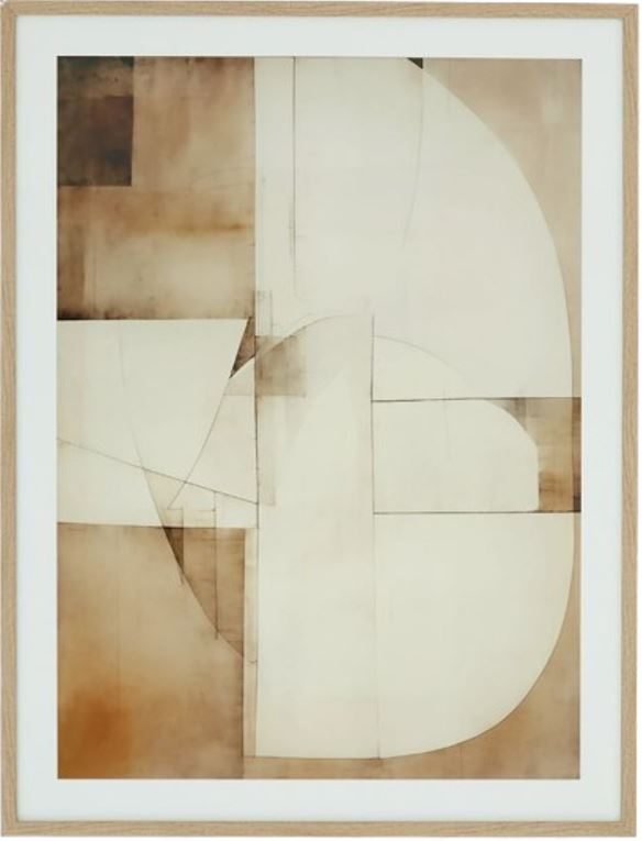 Intriguing geometric forms make for an eye-catching abstract design in this wall art. Brown, tan and white hues add a warmly neutral touch to your wall decor. Restaging your space? The option to hang it one of four ways provides must-have versatility.Read More